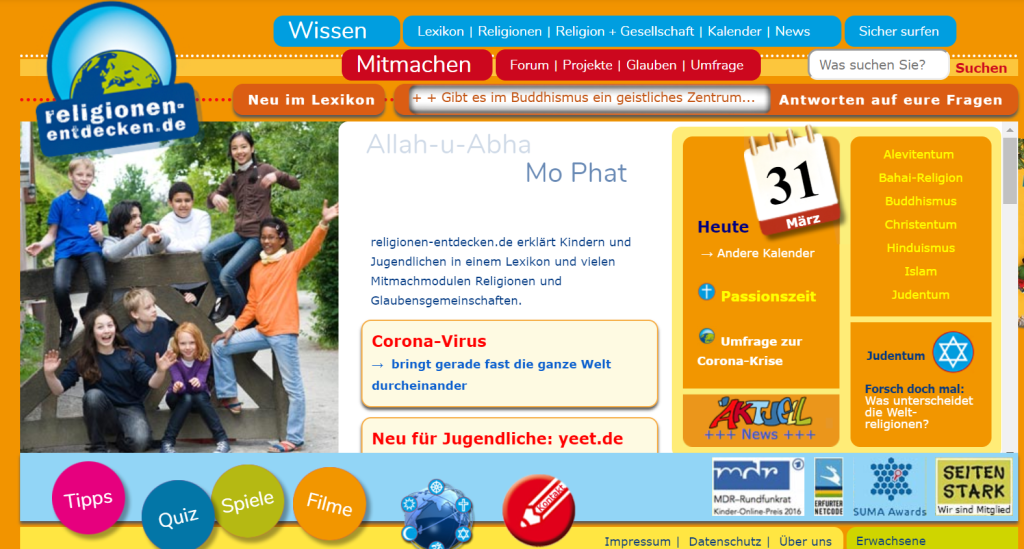 Unabhängiges interreligiöses Portal für Kinder religionen-entdecken.de