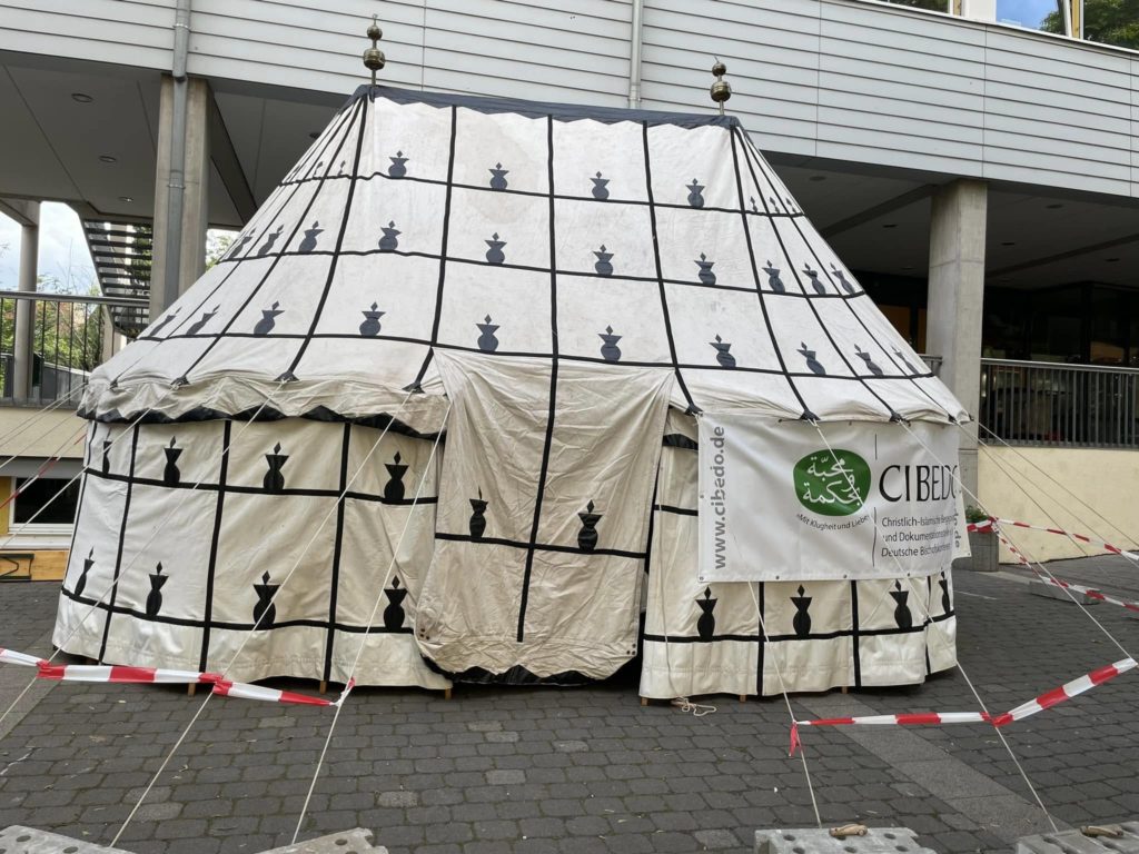 Auch CIBEDO e.V. – Christlich-Islamische Begegnungs- und Dokumentationsstelle der Deutschen Bischofskonferenz war mit einem eigenen Stand mitten im Zentrum der Veranstaltung vertreten. In unserer Begegnungszone konnten Interessierte vielfältige Informationen zum christlich-islamischen Dialog, zu unseren Publikationen und zu aktuellen Themen der muslimisch-christlichen Beziehungskultur erhalten. In zahlreichen Gesprächen bei Tee und Austausch lud unser Stand zum Verweilen ein und bot Raum für persönliche Begegnungen und Fragen. Neben informativen Materialien nutzten viele Besucherinnen und Besucher die Möglichkeit, an interaktiven Angeboten teilzunehmen und sich über Sprache, Kultur und religiöse Vielfalt zu informieren.